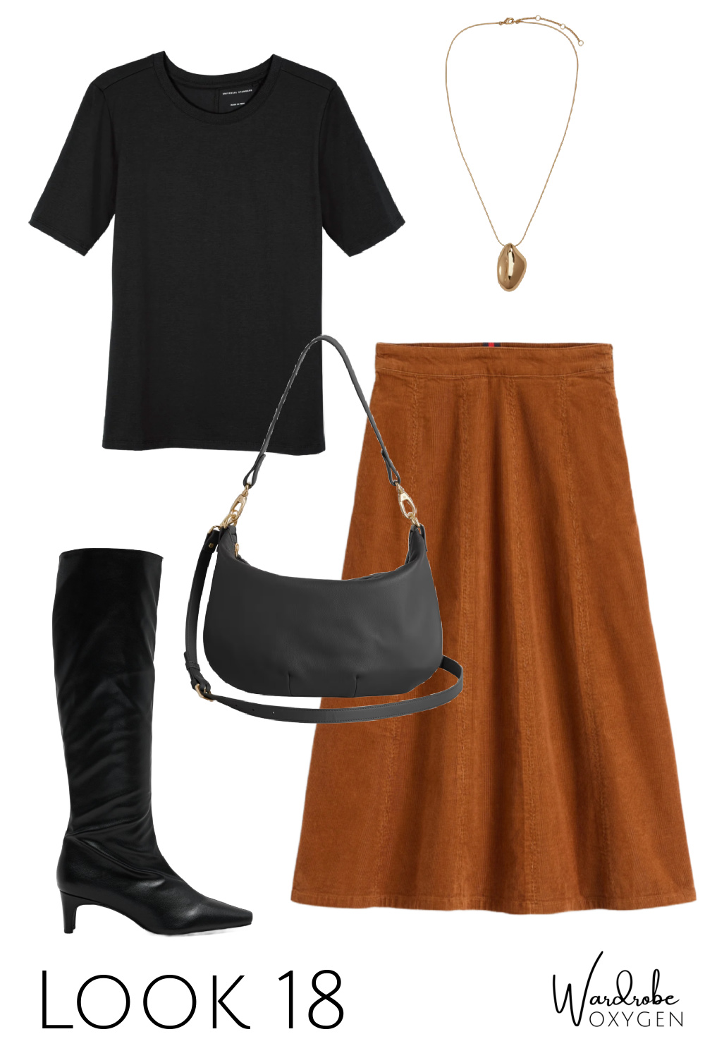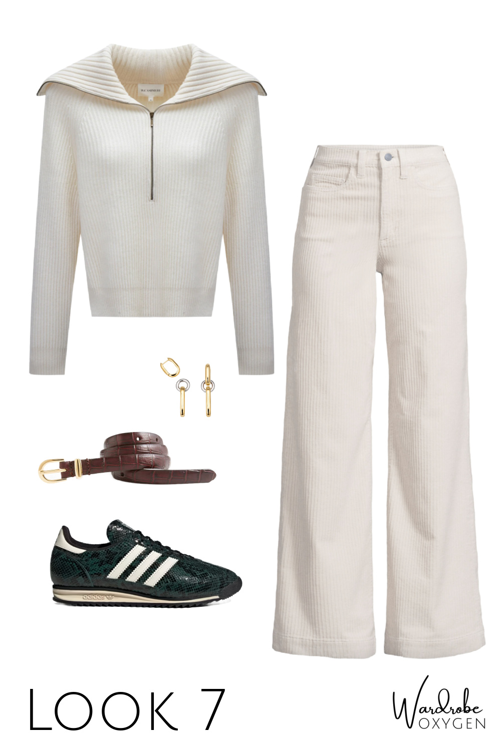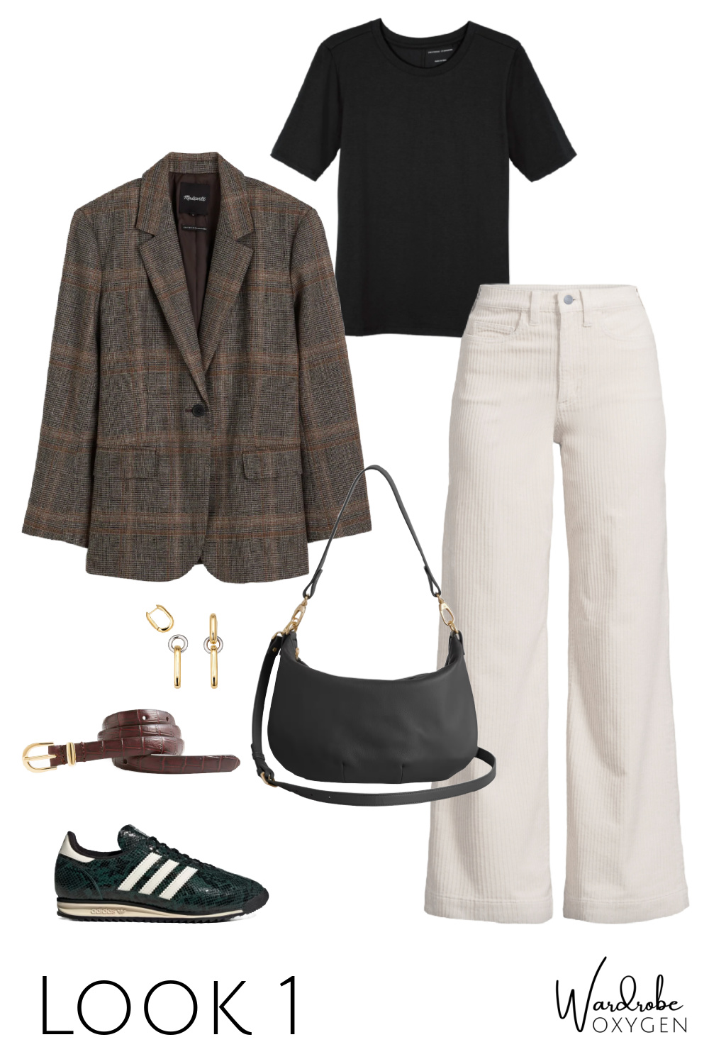 This capsule wardrobe is simpler than many because not everyone has the desire or the budget for a bunch of accessories. And no need; the earrings can convert to smaller hoops for two looks in one, the necklace can be adjusted to three different lengths, and both are well made and interesting enough to become almost-daily signature pieces. I chose a brown croco belt so it can go with leather, with suede, with snakeskin, and most any color.