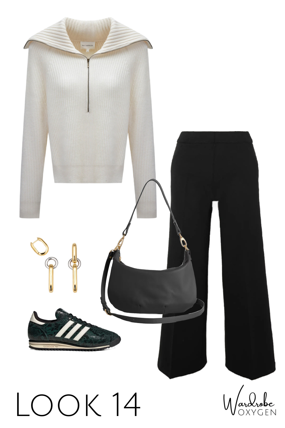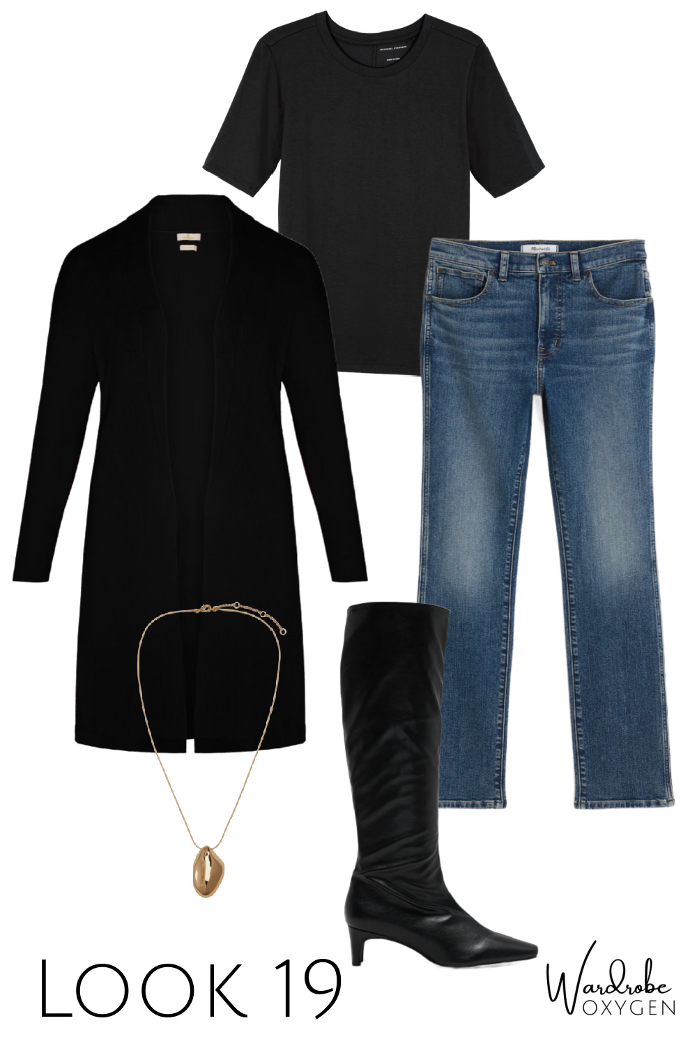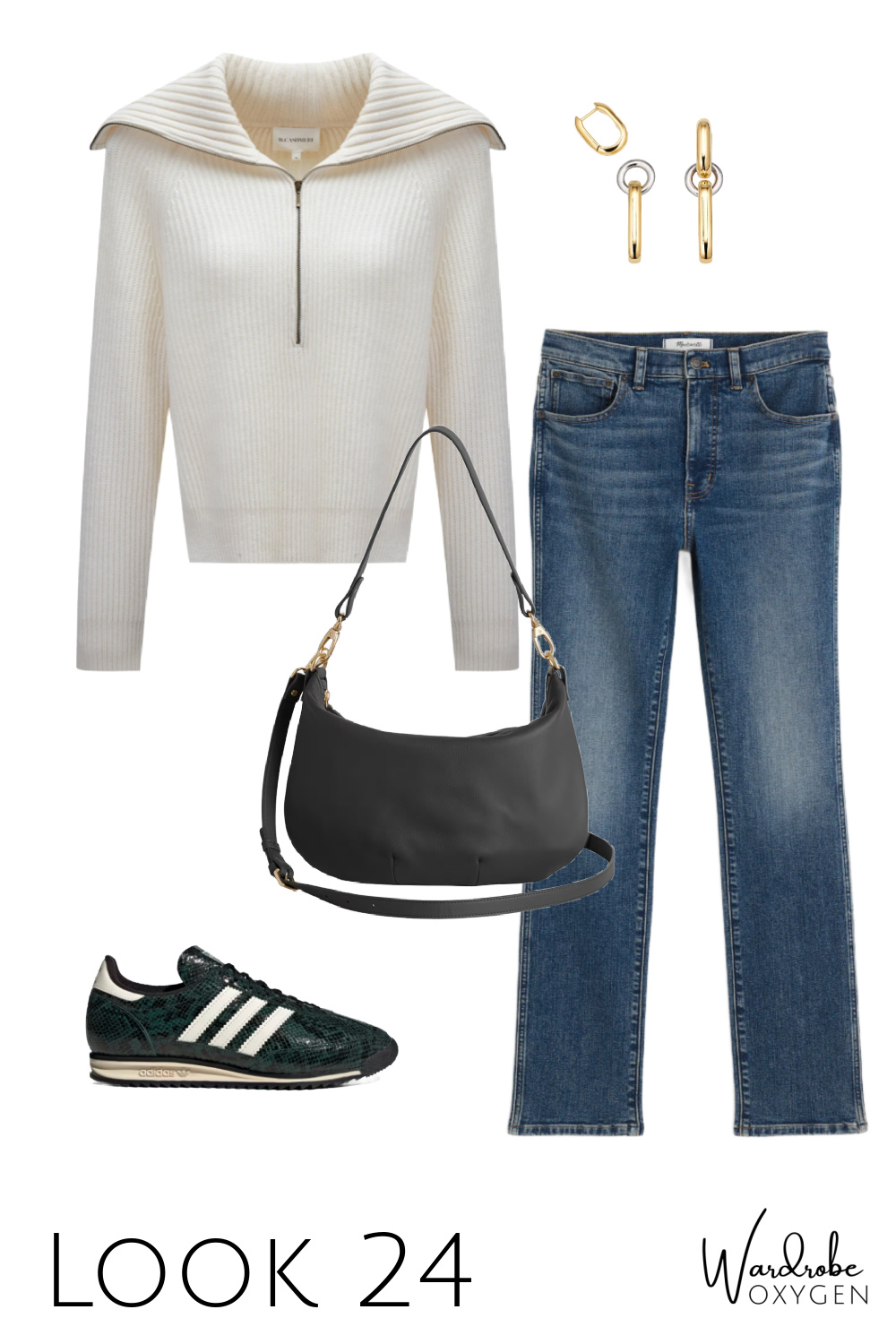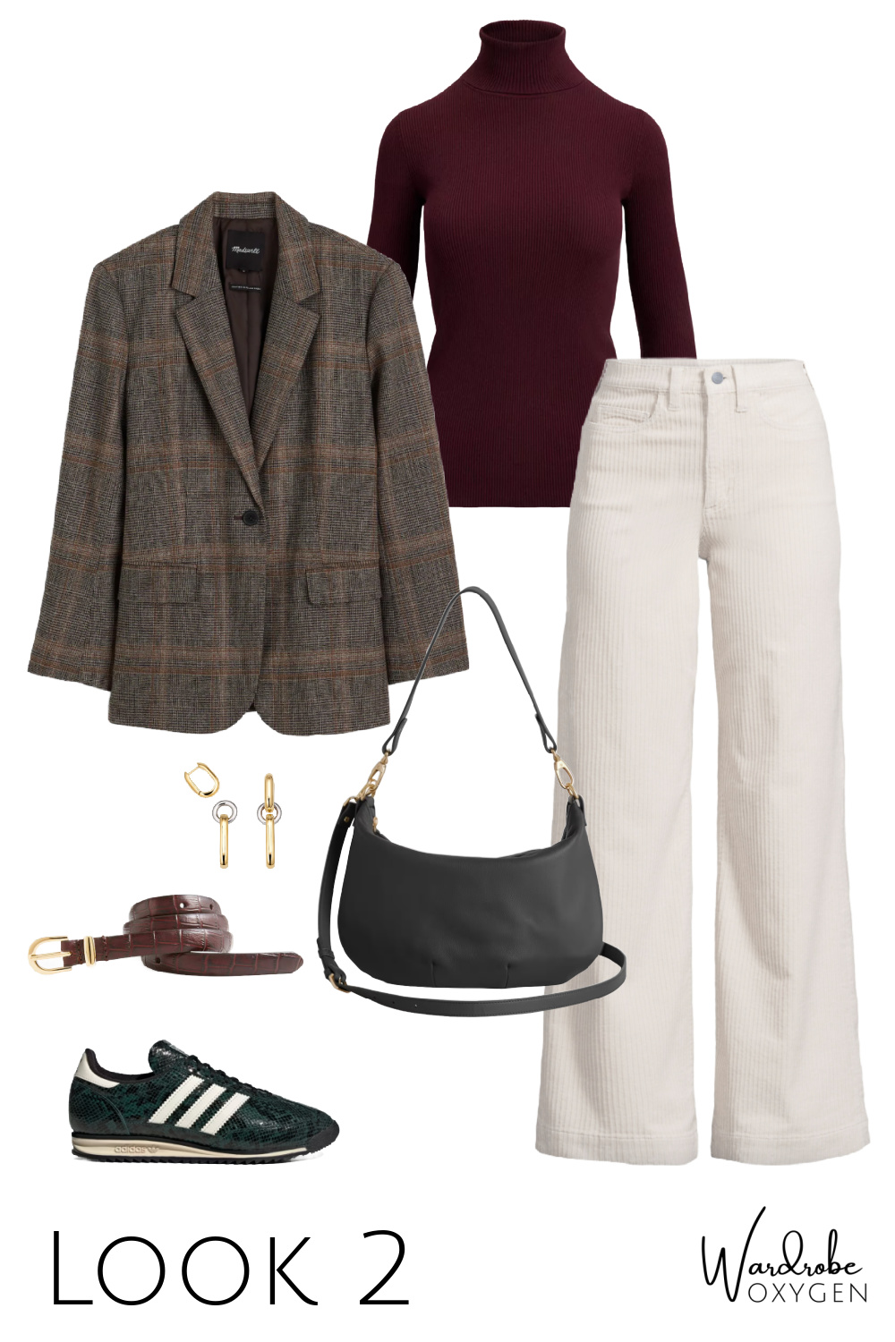 This capsule wardrobe is simpler than many because not everyone has the desire or the budget for a bunch of accessories. And no need; the earrings can convert to smaller hoops for two looks in one, the necklace can be adjusted to three different lengths, and both are well made and interesting enough to become almost-daily signature pieces. I chose a brown croco belt so it can go with leather, with suede, with snakeskin, and most any color.