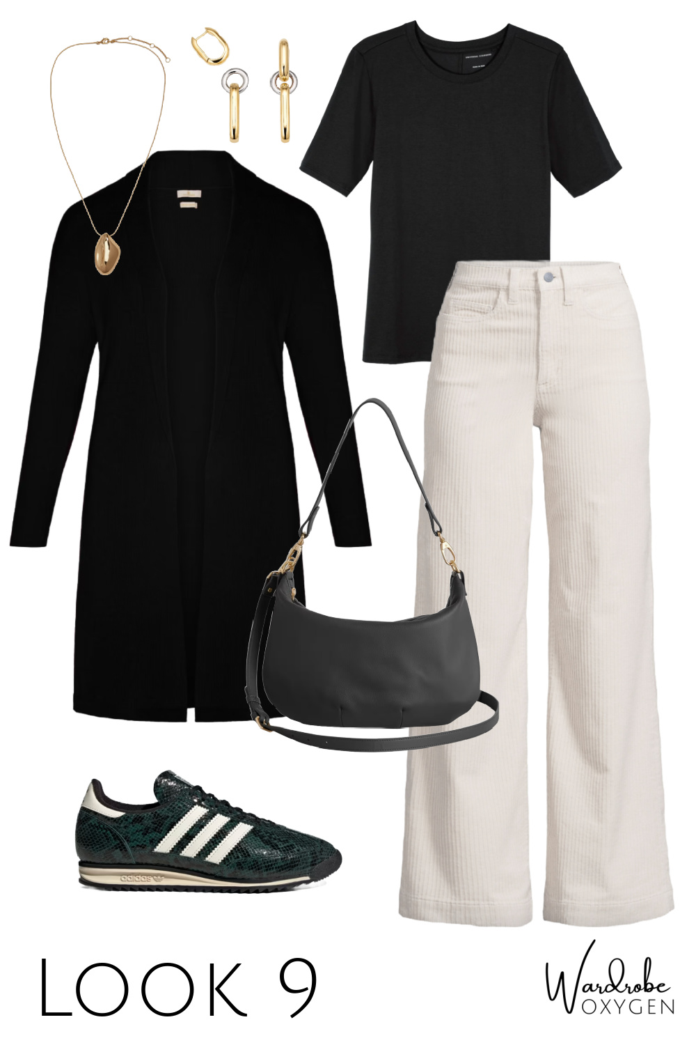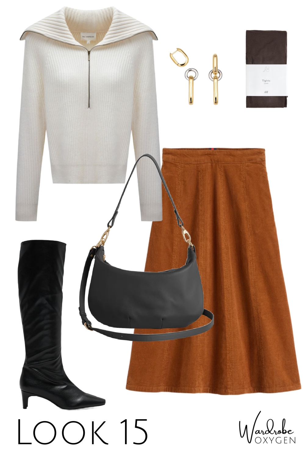 Shop the collage: cream cords (2-26W & petite/tall) | jeans (23-33 & petite/tall) | black ponte pants (XS-3X & petite/tall) | black refined tee (00-40) | cream sweater (XS-XL) | striped top (XXS-3X) | ribbed turtleneck (XXS-XXL & petite; link for plus sizes) | sneakers | flats | boots | cardigan (4/6-20/22) | blazer (XXS-XXL) | sweater coat (XXS-3X) | bag | dress (XS-3X & petite) | skirt (0-20/22 & petite/tall) | earrings | necklace | tights (XXS-4XL) | belt